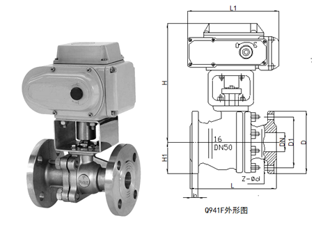 四、 电动法兰球阀Q941F外形尺寸 (单位mm)