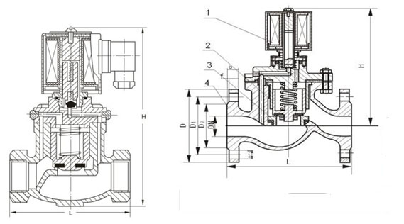 公称通经(DN) 外形尺寸 内螺纹 外形尺寸 法兰尺寸 H L G H L D D2 D1 b f n-d 15 153 92 1/2 175 130 95 65 46 14 2 4-Φ14 20 153 92 3/4 180 150 105 75 56 16 2 4-Φ14 25 153 110 1 195 160 115 85 65 16 3 4-Φ14 32 176 120 1¼ 205 180 140 100 76 18 3 4-Φ18 40 176 140 1½ 220 200 150 110 84 18 3 4-Φ18 50 192 162 2 235 230 165 125 99 20 3 4-Φ18 65 250 290 185 145 118 20 3 4-Φ18 80 260 310 200 160 132 20 3 8-Φ18 100 290 350 220 180 156 22 3 8-Φ18 125 365 400 250 210 184 22 3 8-Φ18 150 400 480 285 240 211 24 3 8-Φ22 (以上尺寸为常规尺寸,如有变化不另行通知,敬请订货前确认)