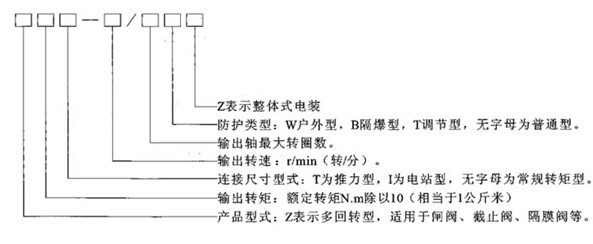 多回转电动阀门电动装置,通称为Z型。适用于阀瓣做直线运动的阀门,如闸阀、截止阀、隔膜阀、水闸门等。用于阀门的开启、关闭或调节,是对阀门实现远控、集控和自控的的驱动装置。他们具有功能全、性能、控制系统、体积小、重量轻、使用维护方便等特点。用于电力、冶金、石油、化工、造纸、污水处理等部门。 按使用环境分:Z为普通型;ZW为户外型;ZB为隔爆型;ZZ为整体型;ZT为整体调节型。 按输出作用力分:有转矩型和推力型。